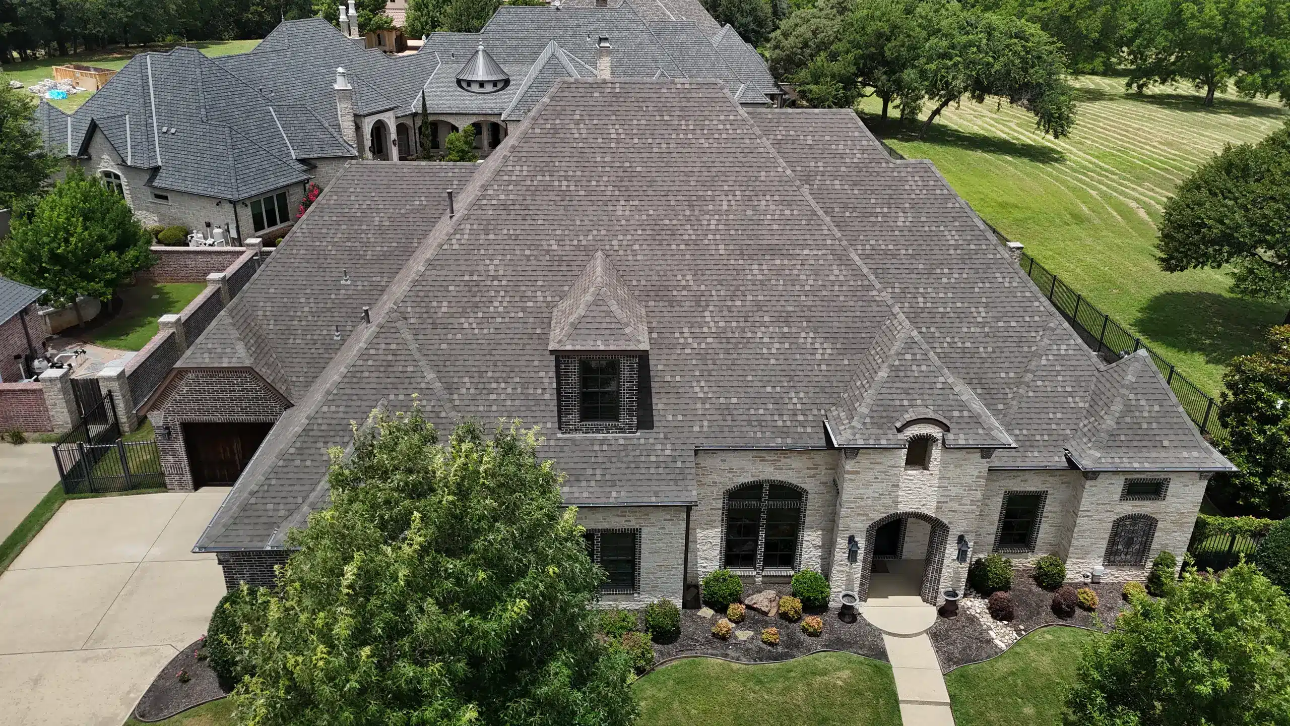 A 12/12 pitch means the roof rises 12 inches vertically for every 12 inches it runs horizontally, a 45-degree angle. This is considered an extremely steep-pitched roofing structure. It requires specialized safety equipment, ropes, harnesses, and more labor time, increasing the complexity and safety measures needed for a successful Mansfield roof replacement.